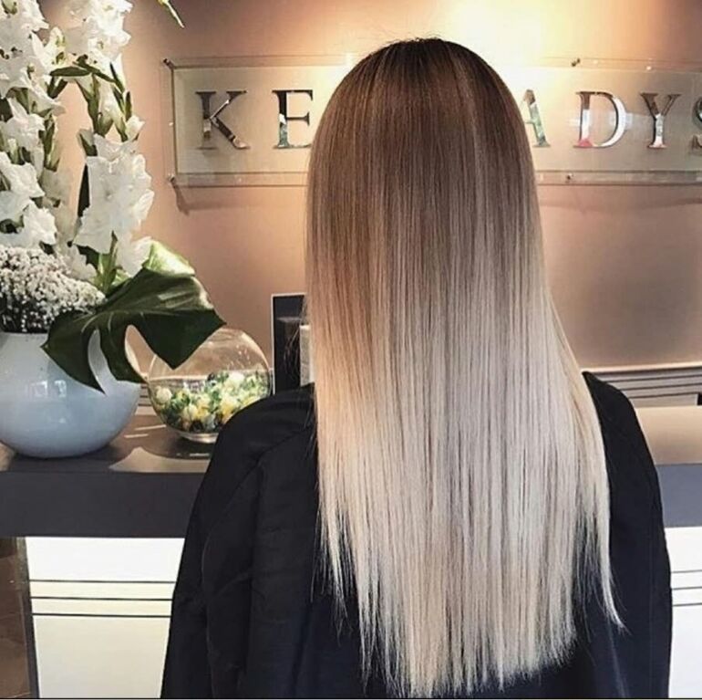 Градиентный блонд придает волосам объем и динамику.