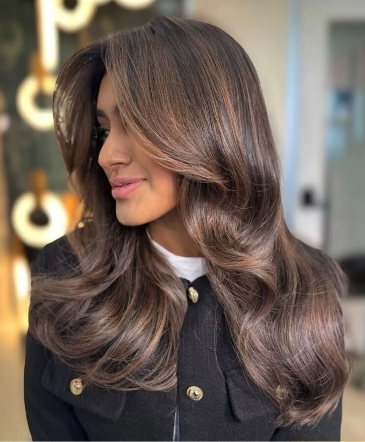 Это универсальный оттенок для темных волос. Он объединяет насыщенные кофейные тона с мягким карамельным сиянием, создавая естественный и благородный эффект.