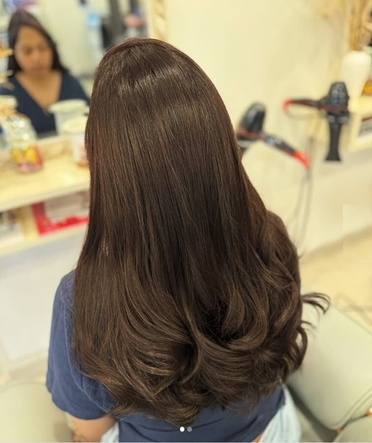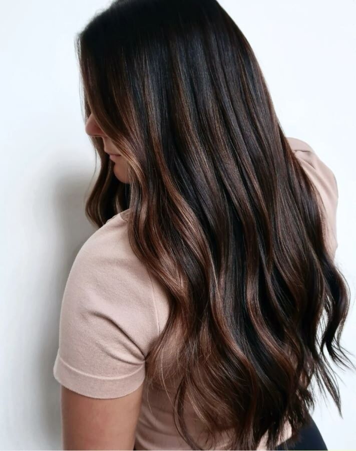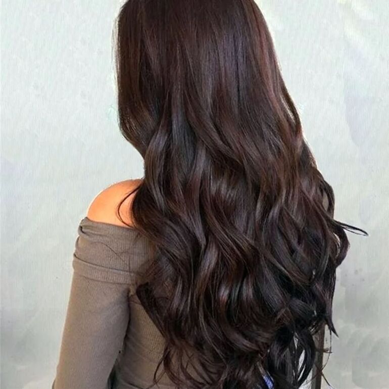 Этот оттенок придает прядям глубину и плотность, а при дневном свете играет легкими янтарными бликами.