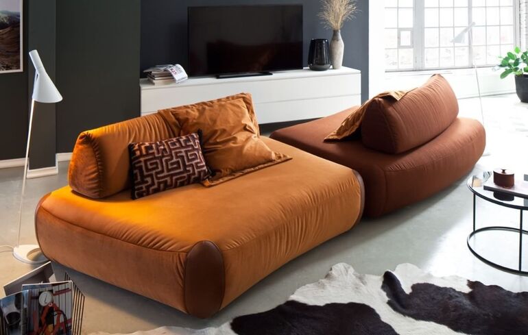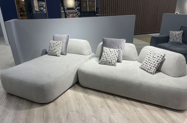 Необычный и современный подход к мебели, который уже стал приметой времени. Спинка у диванов держится за счет собственного веса и держит сидящего. При этом ее можно повернуть, переставить на другой край или убрать и превратить диван в спальное место.