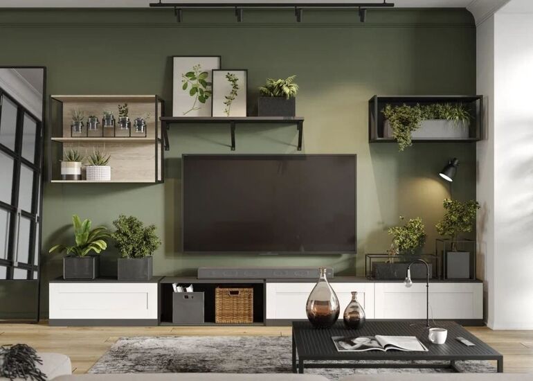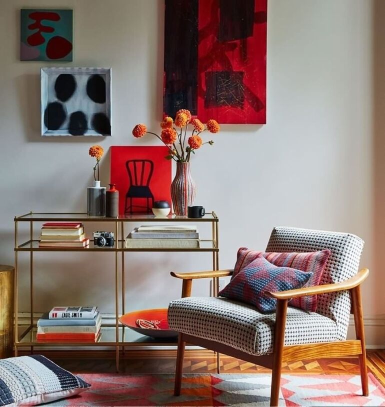 Начните с одного акцентного предмета – например, кресла с гнутыми деревянными элементами. Дополните его нейтральным современным диваном и минималистичным кофейным столиком.