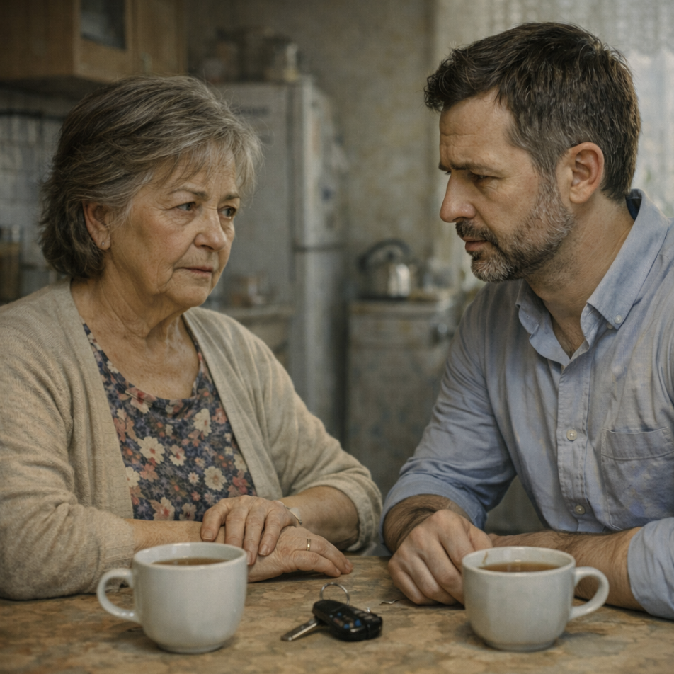 Зять прошёл на кухню, сел на табурет и положил перед собой ключи от машины.
