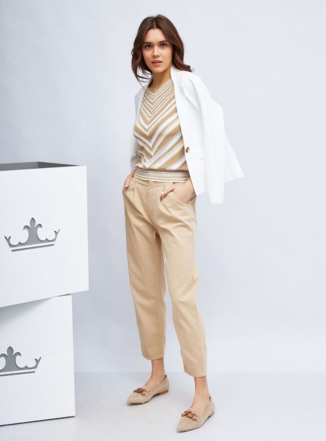Единственным отличием от современных моделей была застёжка, расположенная строго сбоку. Однако крой остался практически неизменным, и в этом сезоне элегантные брюки вновь стали трендом.