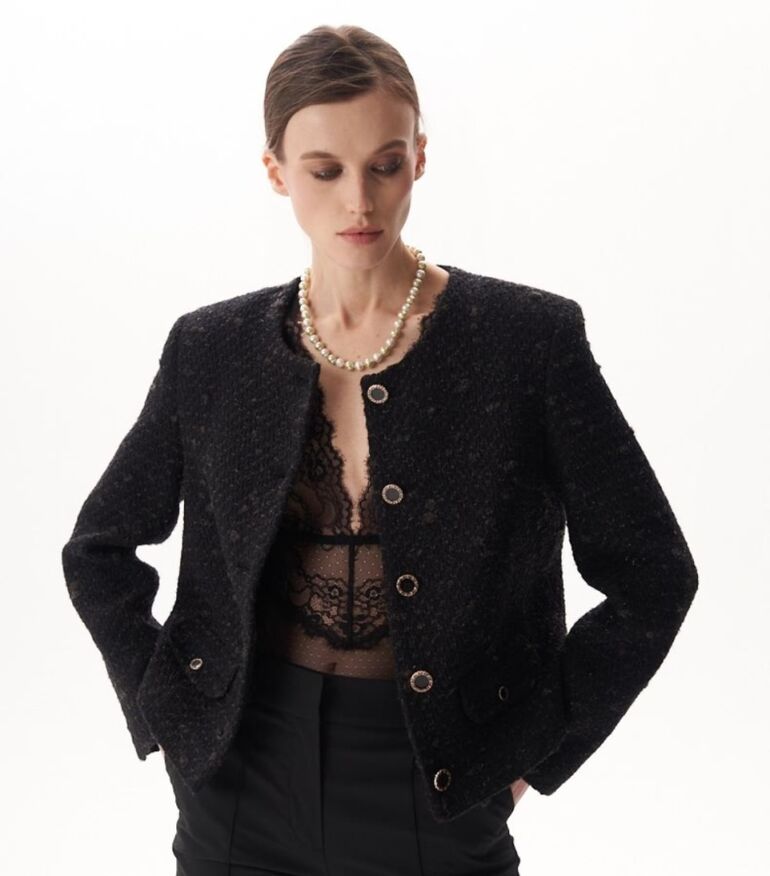 В наши дни твидовый жакет остаётся вневременной классикой. Сегодня его модно носить с джинсами или брюками, что делает его актуальным элементом гардероба.