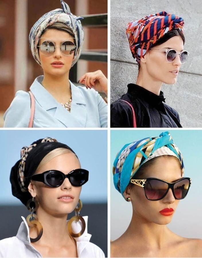 10. Платок на голове + солнечные очки «кошачий глаз»