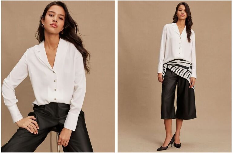 Белая рубашка уже несколько десятилетий занимает особое место среди вещей, неподвластных времени. Она является незаменимым элементом гардероба активной женщины, предлагая множество вариантов для создания образов. Рубашку можно комбинировать с джинсами для расслабленного стиля, с лоферами для деловых встреч или заправлять в классические брюки для особых случаев.