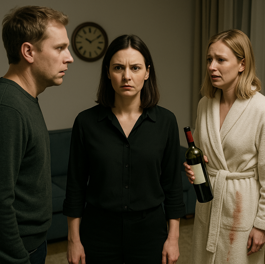Из кухни вышла Света, с бутылкой. Увидела Марину — и замерла. Стекло выскользнуло из рук, ударилось о ковёр. Вино растеклось, оставив бурое пятно.