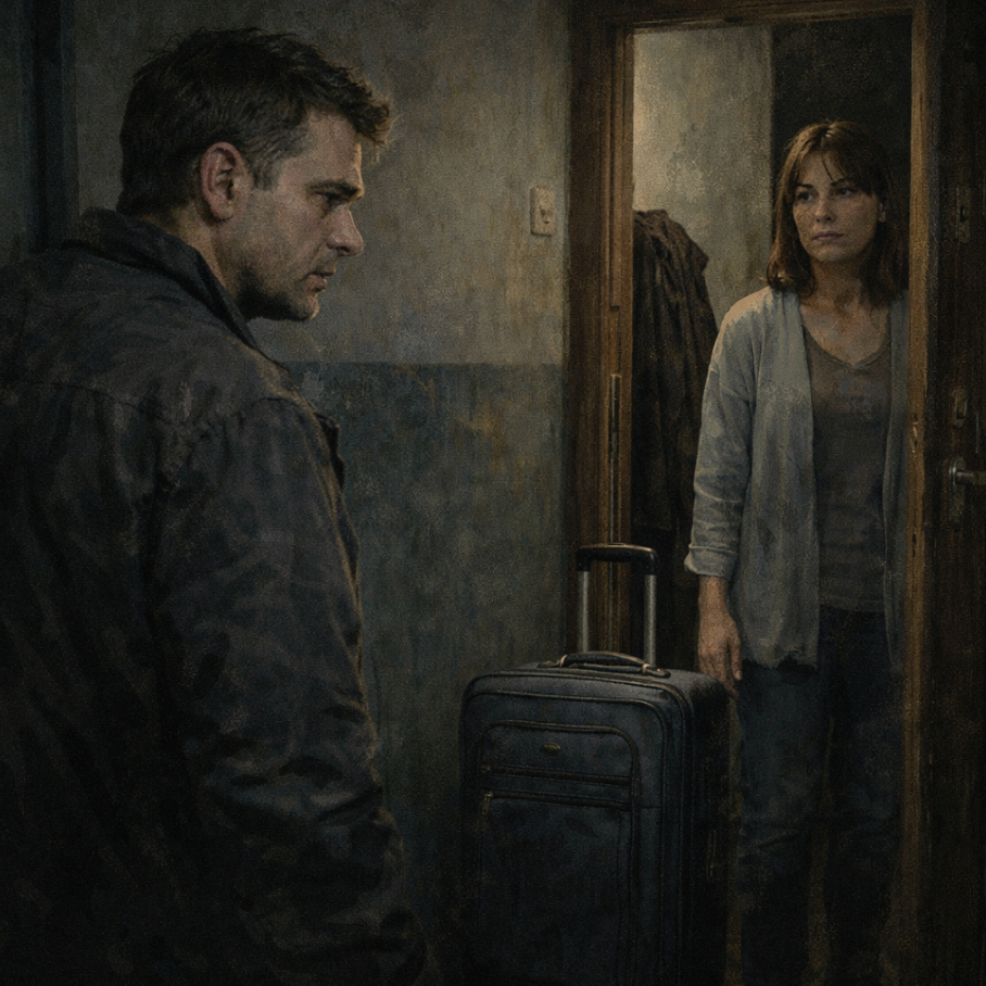 Когда Артём вошёл в квартиру, бледный и растерянный, она уже стояла в прихожей. Чемодан ждал у двери.