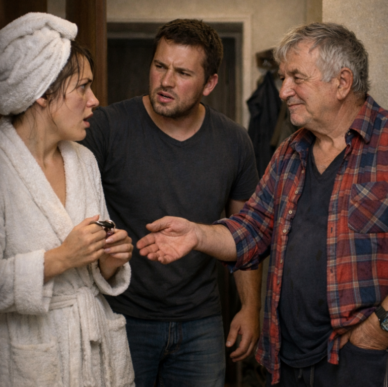 Кирилл бросил это таким голосом, будто я здесь случайная визитёрша. Хотя я только что покинула собственную ванную, в своём халате, с полотенцем на влажных волосах. Вышла — и остолбенела. В прихожей мялся дядечка лет шестидесяти пяти, седой, в спортивных штанах с вытянутыми коленями и в клетчатой рубахе, застёгнутой вкривь и вкось.
