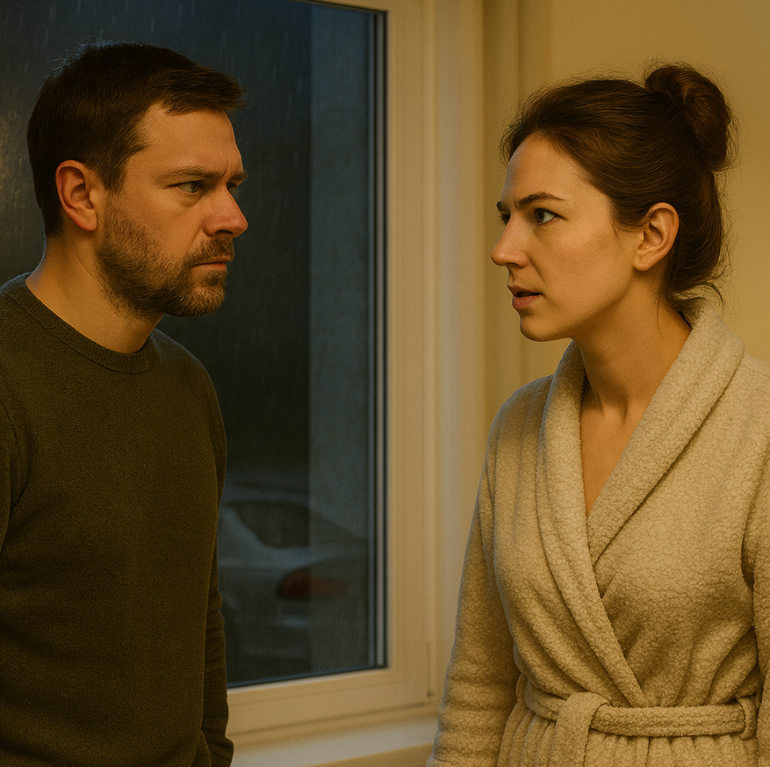 Через минуту она вышла из кухни. На ней был домашний халат, волосы собраны в небрежный узел. Она не выглядела сердитой. Скорее — уставшей, опустошённой.