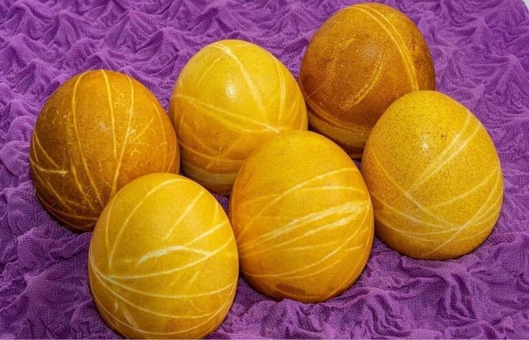 Для получения насыщенного золотого оттенка оставьте яйца в отваре до полного остывания.