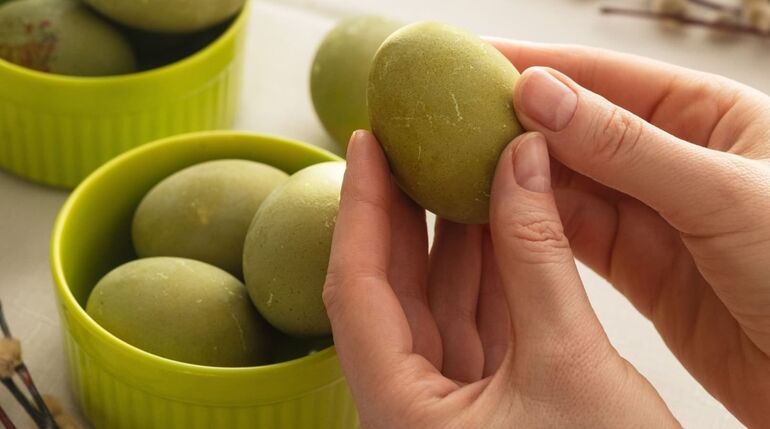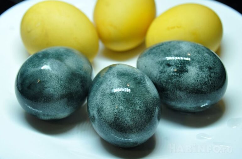 В результате химической реакции пигментов яйца приобретут серо-зелёный оттенок.