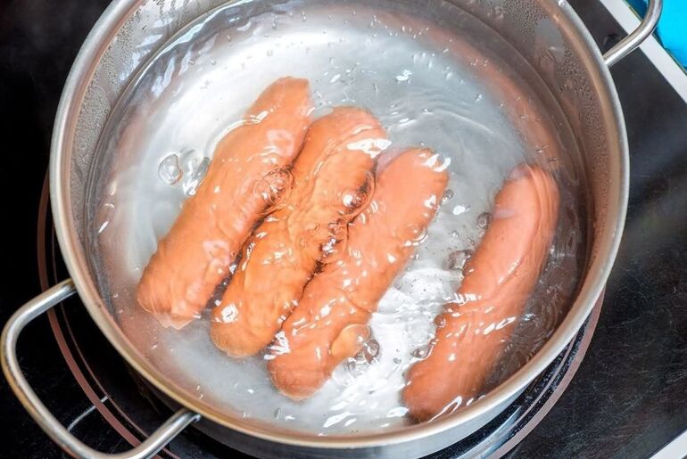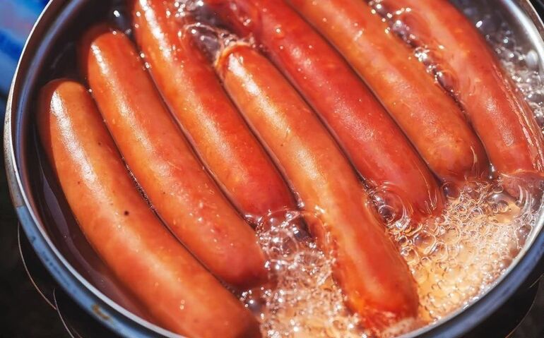 Варка обеспечивает идеальную текстуру сосисок: сочную, нежную и однородную.