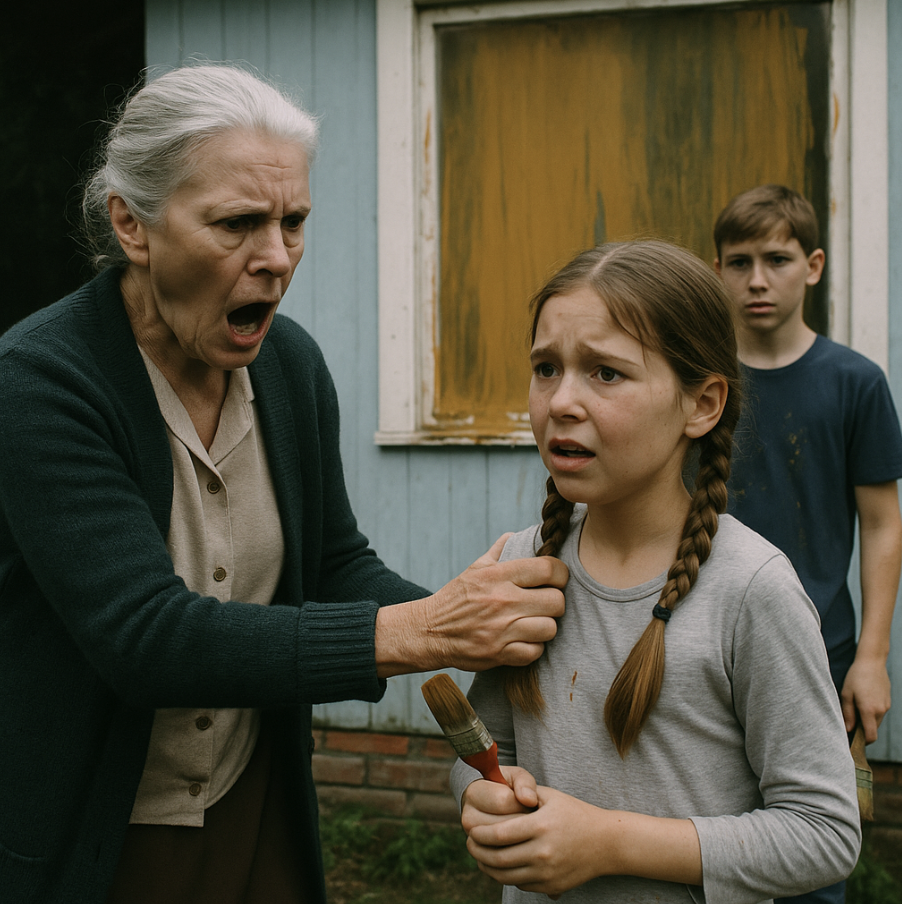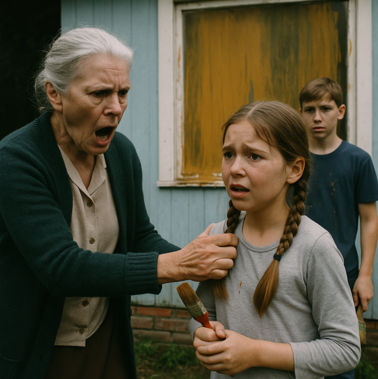 — Да вы что тут вытворяете?! — взорвалась она так, что дети вздрогнули и выронили кисти. — Я же ясно сказала — только доски! А вы весь забор измазали! И стул тоже! Чем вы думаете?