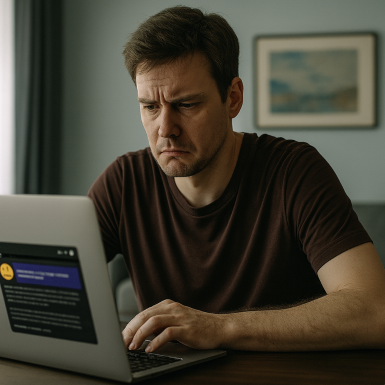 Пароля нет — странно. Вероника всегда фанатела по защите данных. На экране висел нельзяgram. Слева — бесконечные рабочие чаты: «Отдел маркетинга», «Снабжение» и прочие. Но закреплён был всего один контакт, без имени — просто эмодзи.
