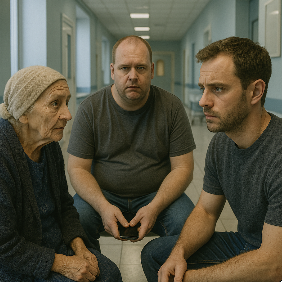 Через час я уже был там. В коридоре сидела мать — маленькая, сгорбленная. Рядом Серёга, лысеющий, располневший, в растянутых джинсах.